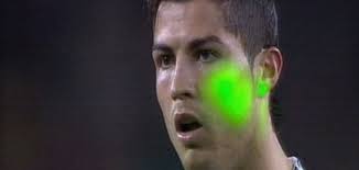 | CR7 apuntado con un láser cuando se dispone a sacar una falta |